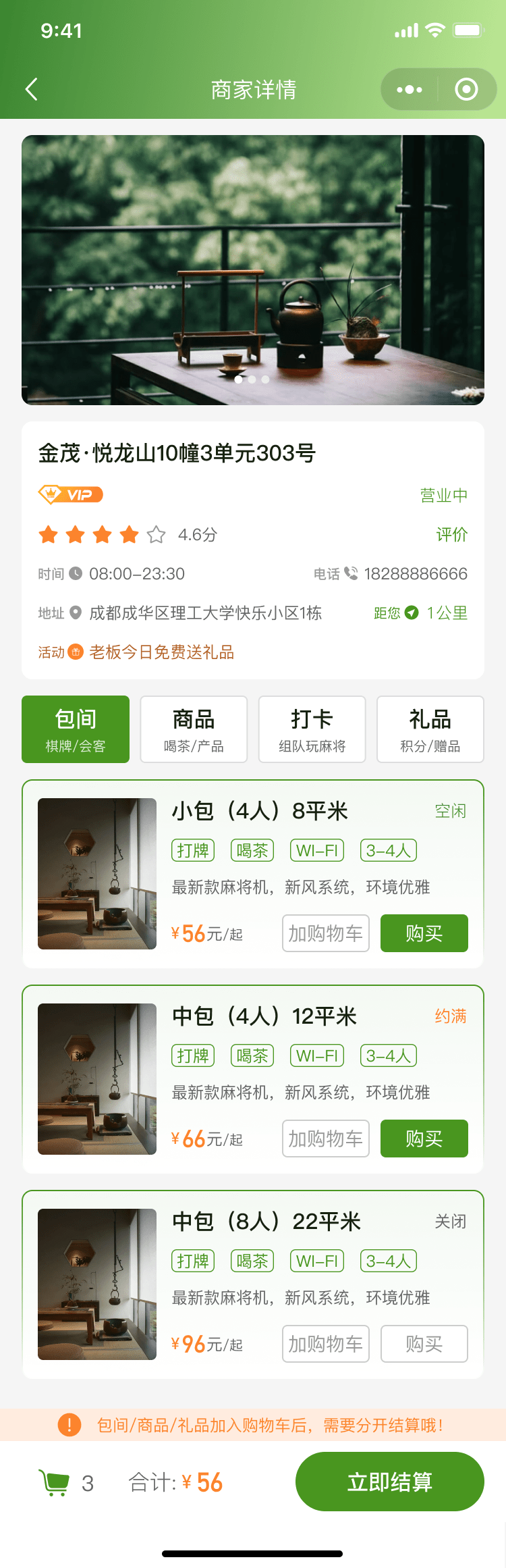 為了提升用戶的體驗(yàn),小程序提供了多種優(yōu)質(zhì)的包間選擇,包括精致小包、優(yōu)質(zhì)中包和品質(zhì)大包等。這些包間不僅環(huán)境優(yōu)雅,還配備了完善的設(shè)施,確保用戶在享受茶文化的同時(shí),也能得到舒適的休閑體驗(yàn)。