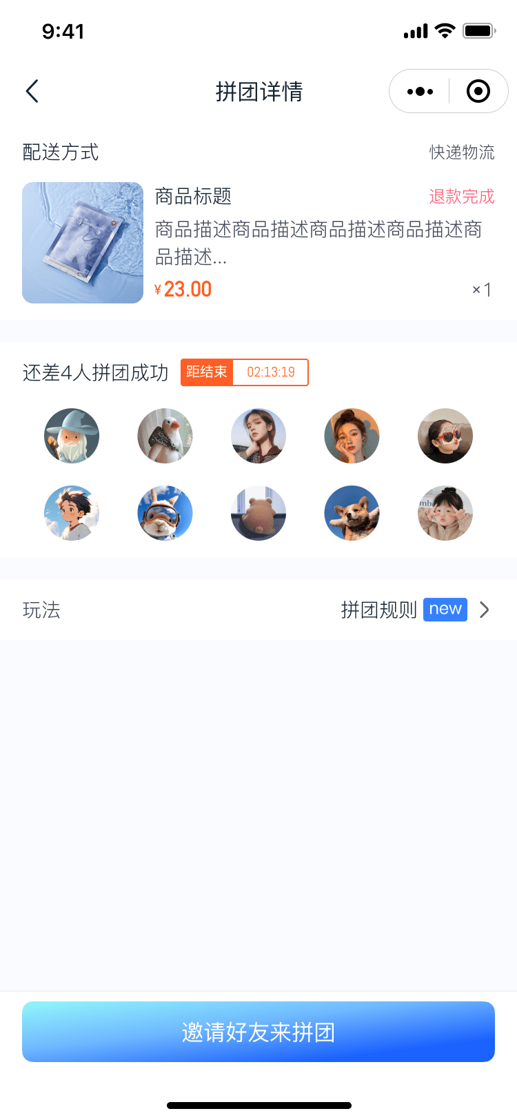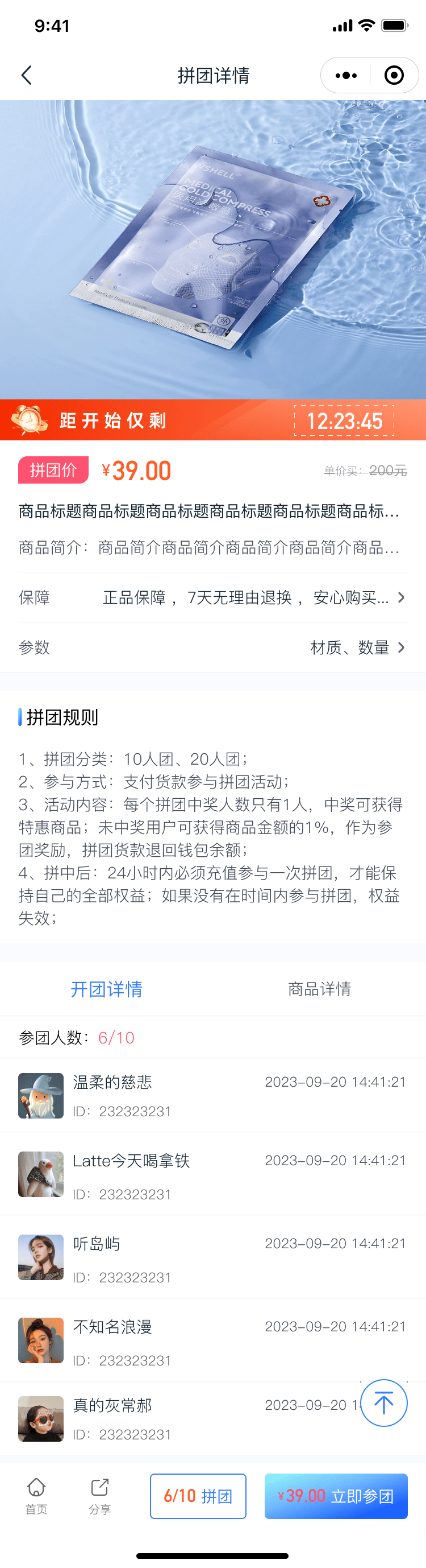 2. 拼團(tuán)功能:支持多人團(tuán)、多次拼團(tuán),用戶可以自主發(fā)起拼團(tuán)或參與他人拼團(tuán),享受更低價(jià)格。