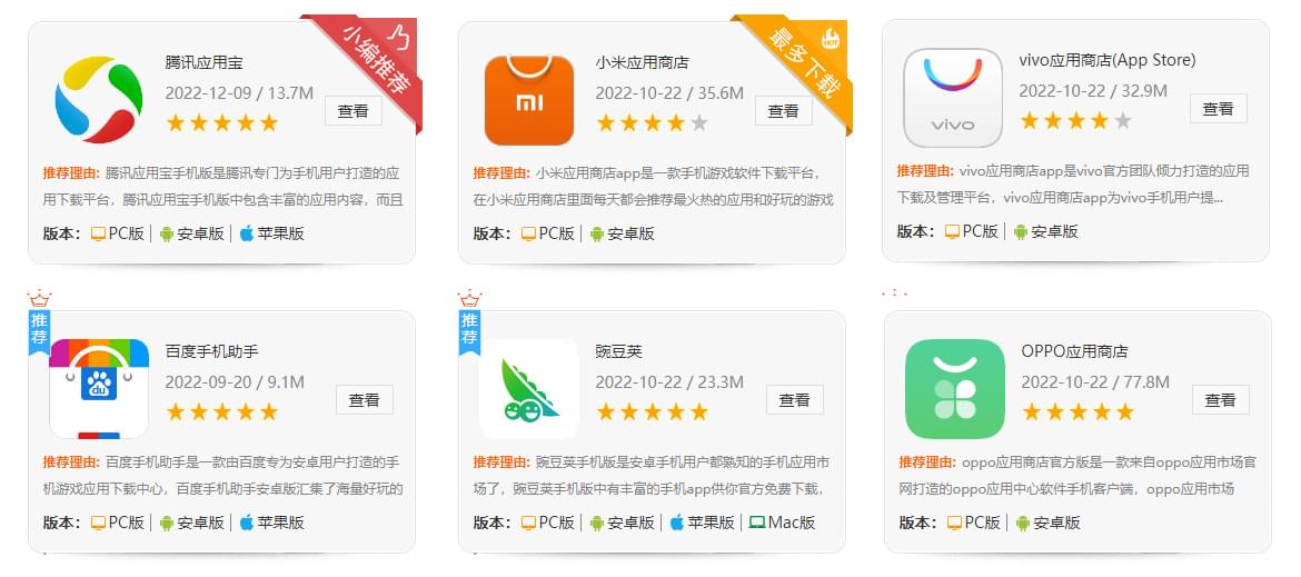 不同的手機應(yīng)用市場上架標準是不一樣的。目前主要的安卓平臺有華為、小米、vivo、oppo、魅族、pp助手/豌豆莢、應(yīng)用寶、百度手機這幾個市場。