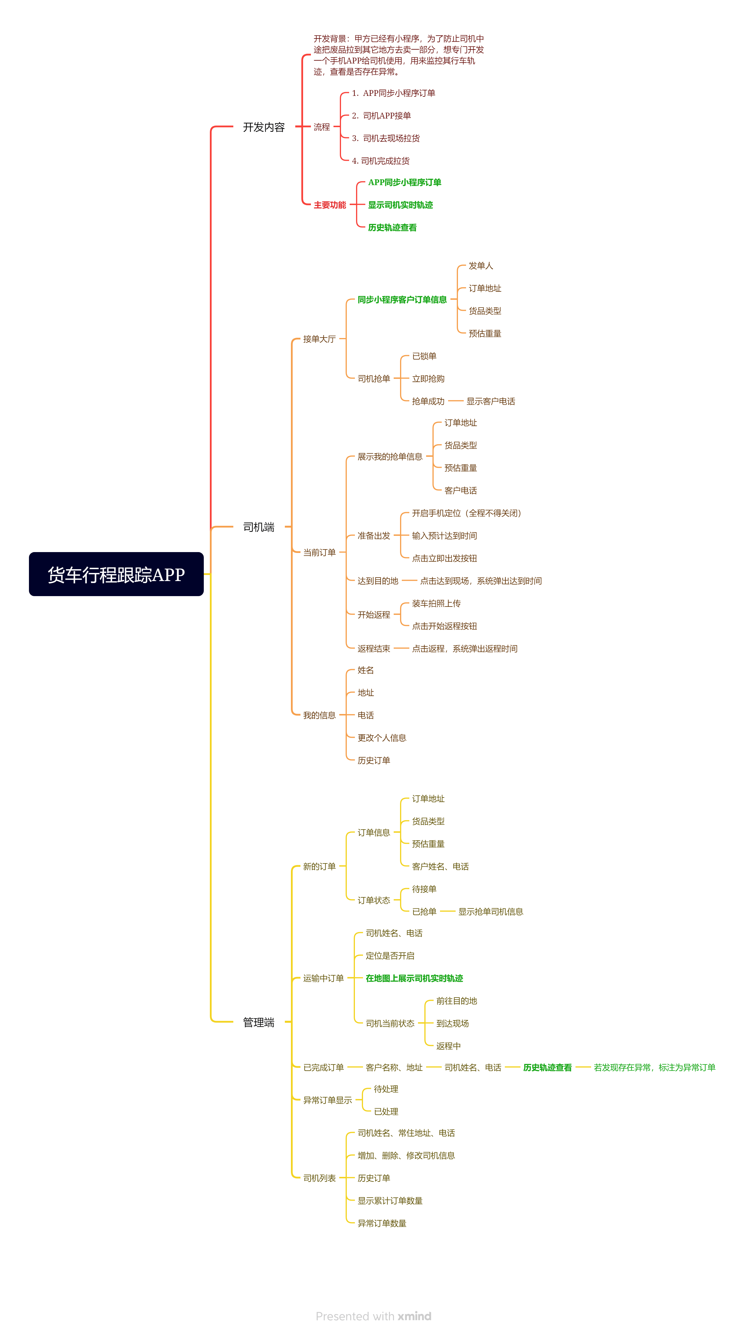 昨天小火科技給一位客戶梳理了一份貨車行程追蹤APP功能需求表。