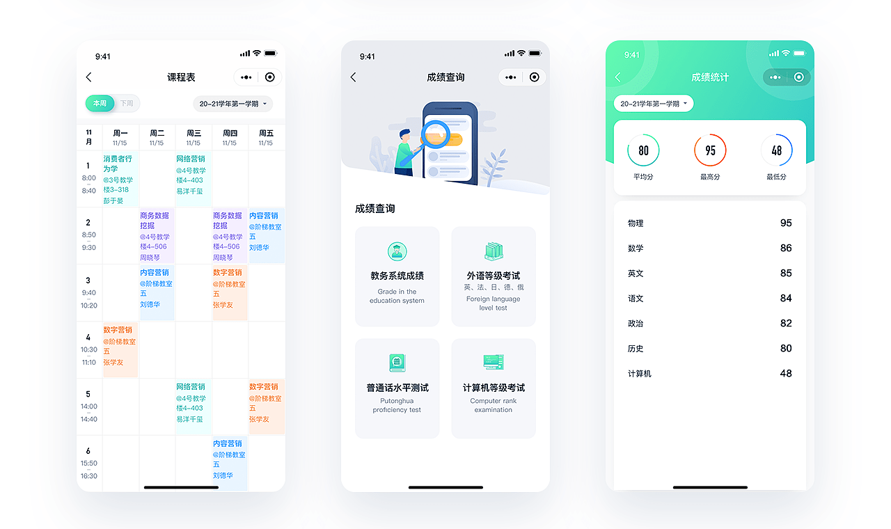 1. 查看考勤、成績、課表:學生可以通過小程序輕松查看自己的考勤記錄、成績和課表,方便學生隨時掌握自己的學習和出勤情況。