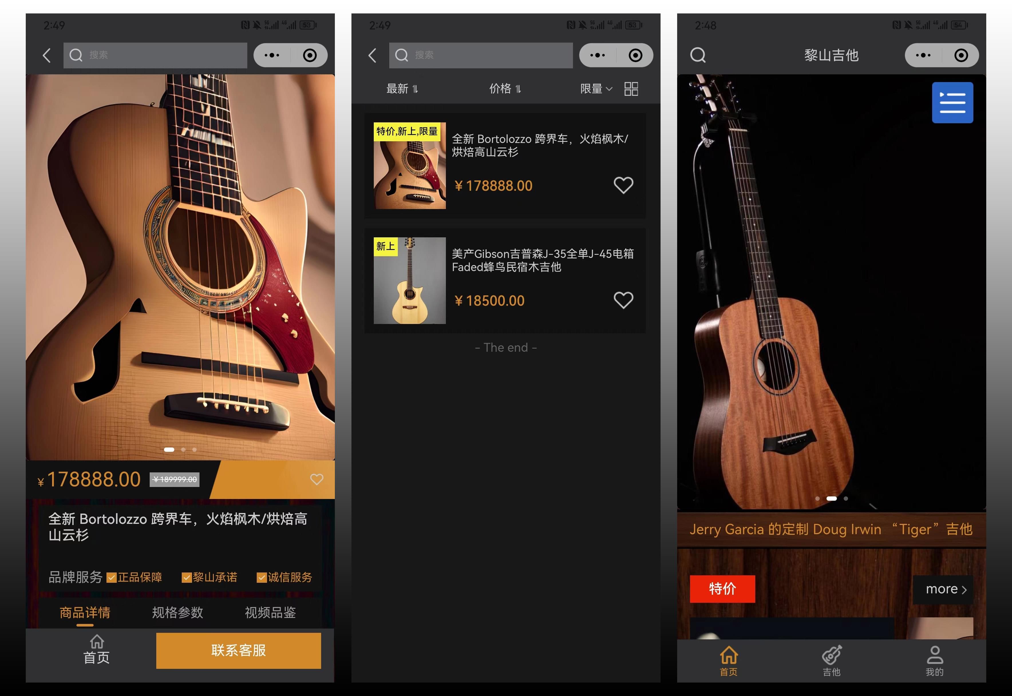 與普通吉他不同的是,該吉他平臺(tái)商城的定位是中高端吉他,售價(jià)一般都幾萬(wàn)到幾十萬(wàn)不等??蛻魪木W(wǎng)絡(luò)上瀏覽到我們的案例之后,喜歡我們的設(shè)計(jì),就找到了我們。