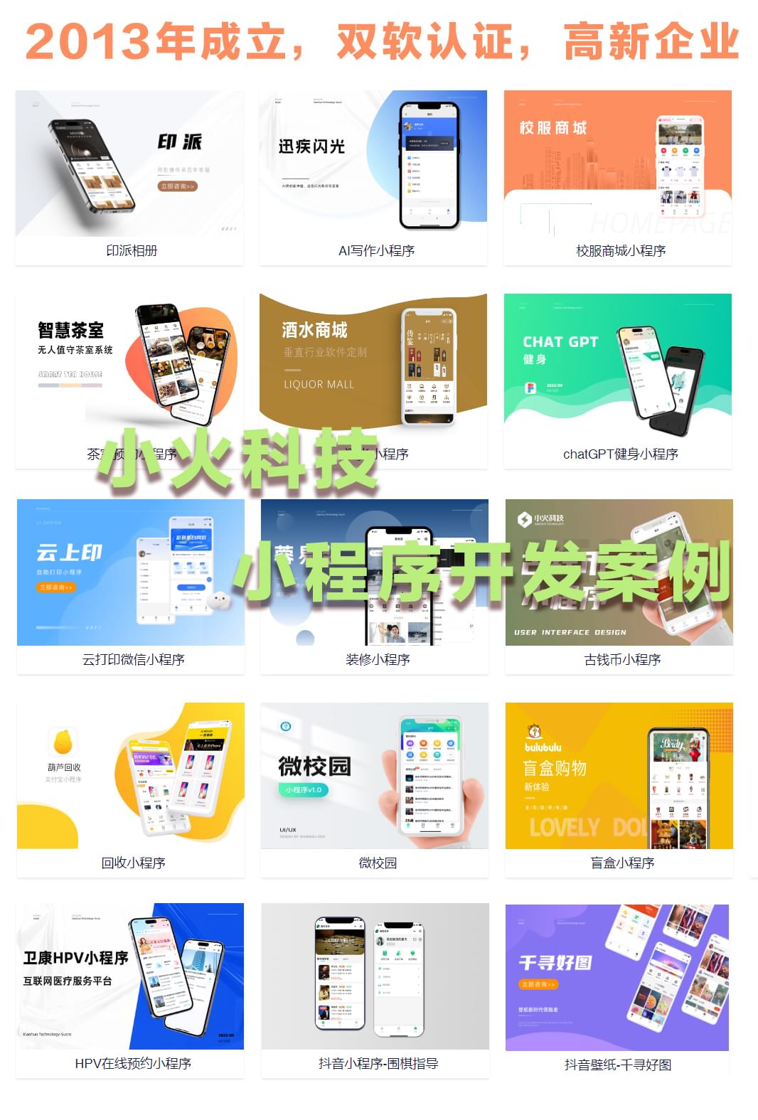9.小程序開發(fā)公司推薦:小火科技作為一家專業(yè)的小程序和APP手機(jī)軟件開發(fā)公司,從2013年以來,一直在從事相關(guān)軟件的開發(fā)制作公司,公司擁有成熟的開發(fā)團(tuán)隊,分工明確,搭配科學(xué)。從項目最初的立項開始,到后期的運(yùn)維,全程擁有專業(yè)化的團(tuán)隊負(fù)責(zé)。之前看過小編文章的小伙伴都知道,小程序的可信度是非常高的,同時小程序可以實(shí)現(xiàn)基于web框架的幾乎所有能夠,通過定制開發(fā),能夠?qū)崿F(xiàn)強(qiáng)大的功能。有關(guān)小程序的開發(fā)制作,以及小程序的備案相關(guān)問題,請咨詢小火科技。