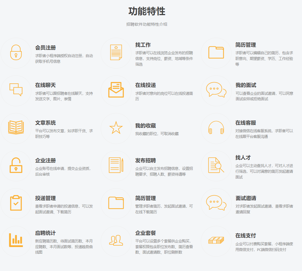 成都小火科技作為一家軟件開發(fā)公司,從2013年成立至今,先后參與了數(shù)以百計的政企項目,我們對我們接手的每一個項目都高度重視,不管是大體量的項目,還是小程序、APP應(yīng)用,我們都高度重視。今天給大家介紹一款招聘軟件小程序,該招聘軟件旨在為企業(yè)和個人提供便捷、高效的招聘服務(wù)。該小程序包含微信小程序求職者端、微信小程序企業(yè)招聘端、PC企業(yè)招聘端、PC管理平臺端,涵蓋了從求職者到企業(yè)的全方位招聘需求。下面是這款招聘小程序的主要功能,有相關(guān)需求的用戶,請與我司交流。