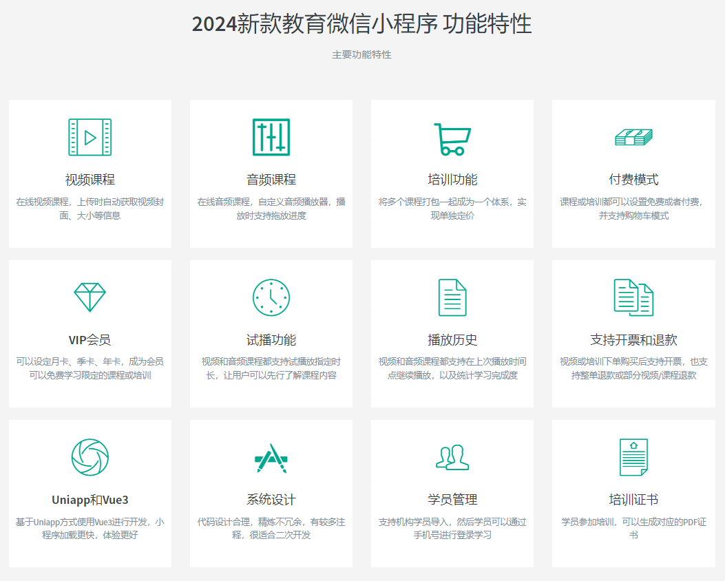 結(jié)合教育行業(yè)的實(shí)際情況,也為了滿足廣大師生的需求,成都小火科技公司推薦一款功能全面的教育培訓(xùn)微信小程序,為繼續(xù)教育、企業(yè)培訓(xùn)、考試學(xué)習(xí)等場(chǎng)景提供一站式音視頻學(xué)習(xí)平臺(tái)。這款小程序不僅支持課程購(gòu)買(mǎi)、會(huì)員充值等在線付費(fèi)學(xué)習(xí)方式,還具備培訓(xùn)證書(shū)的生成與查證功能。下面,讓我們一起來(lái)詳細(xì)了解這款小程序的主要功能。