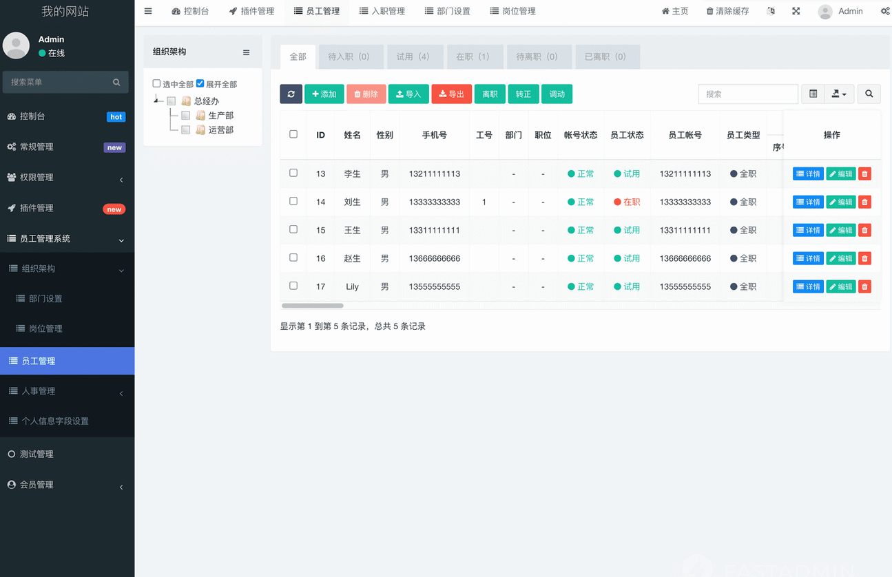 快捷操作員工狀態(tài):系統(tǒng)提供了快捷操作員工的入職、離職、轉(zhuǎn)正和調(diào)崗事件的功能。您可以通過簡單的操作,快速更新員工的狀態(tài),簡化管理流程。